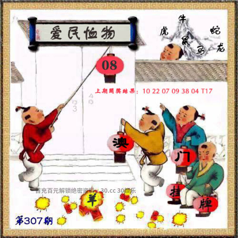 307期正版彩图挂牌:挂:08 爆:羊 挂牌成语:爱民恤物 挂牌出肖:牛虎马鼠蛇龙